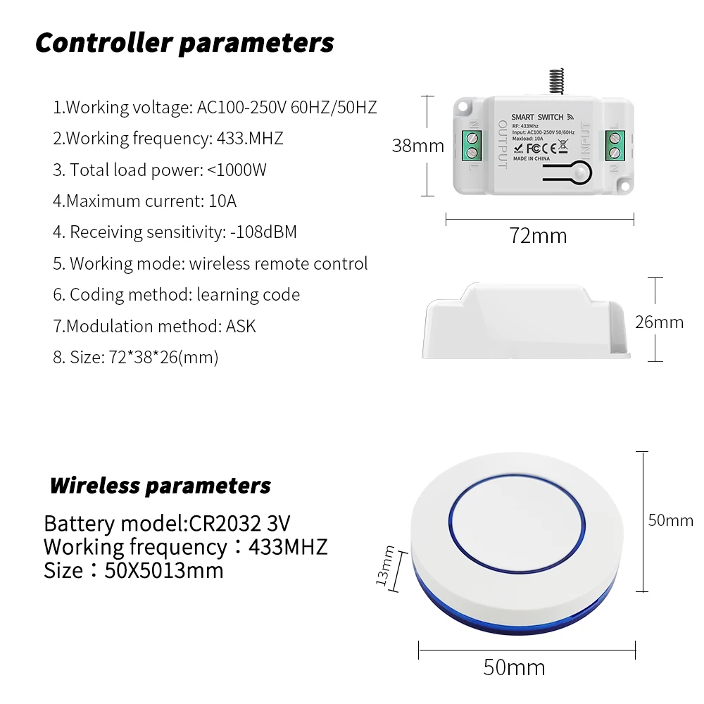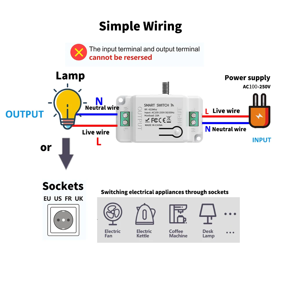 ⭐⭐⭐ВАЖНО: Беспроводной выключатель необходимо использовать вместе с приёмником. Приёмник подключается к нулевому и фазному проводу.