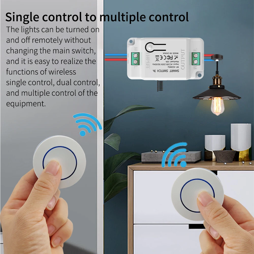 Беспроводной выключатель — прокладка проводов не требуется. Свободное перемещение в пределах рабочей зоны. Управление одним светильником из нескольких мест.