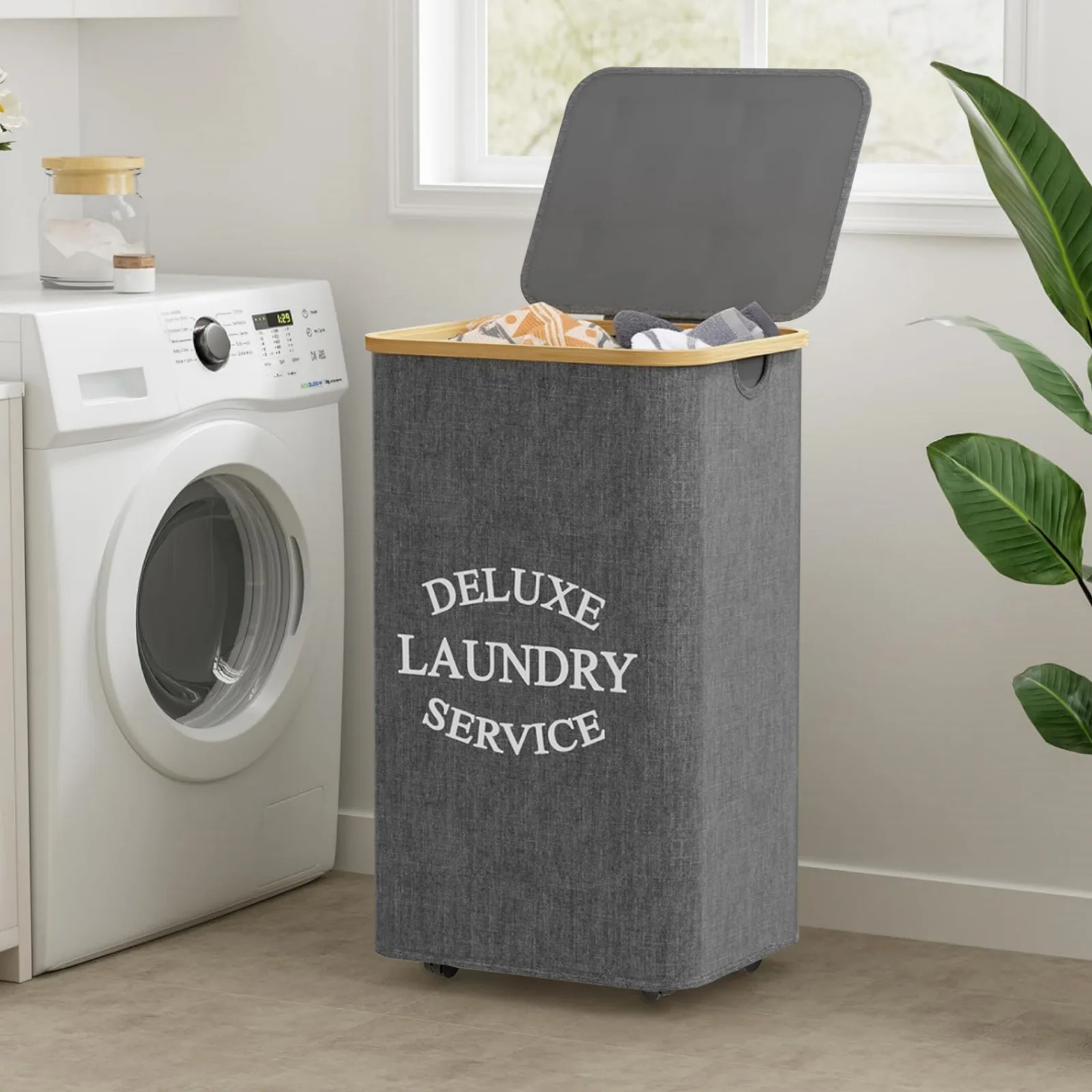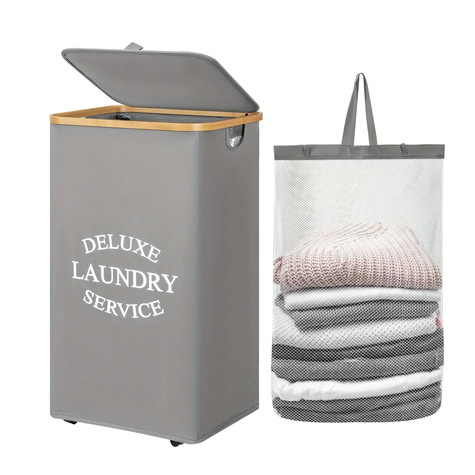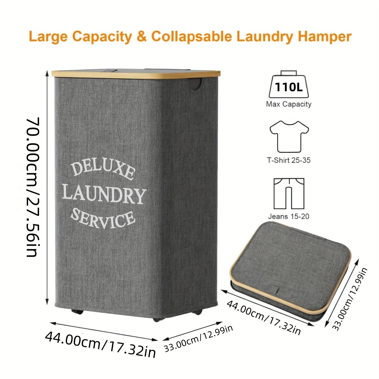 / 110L Foldable Laundry Basket with Wheels Ultra-Large Capacity Includes Inner Mesh Bag Handles And Lid for Clothes Storage
