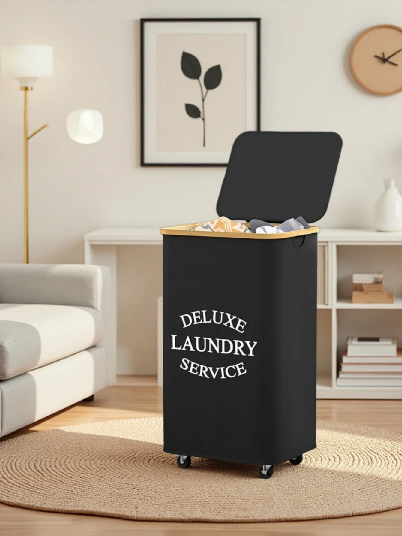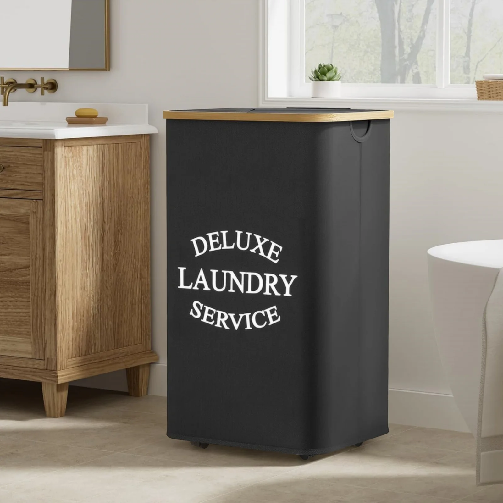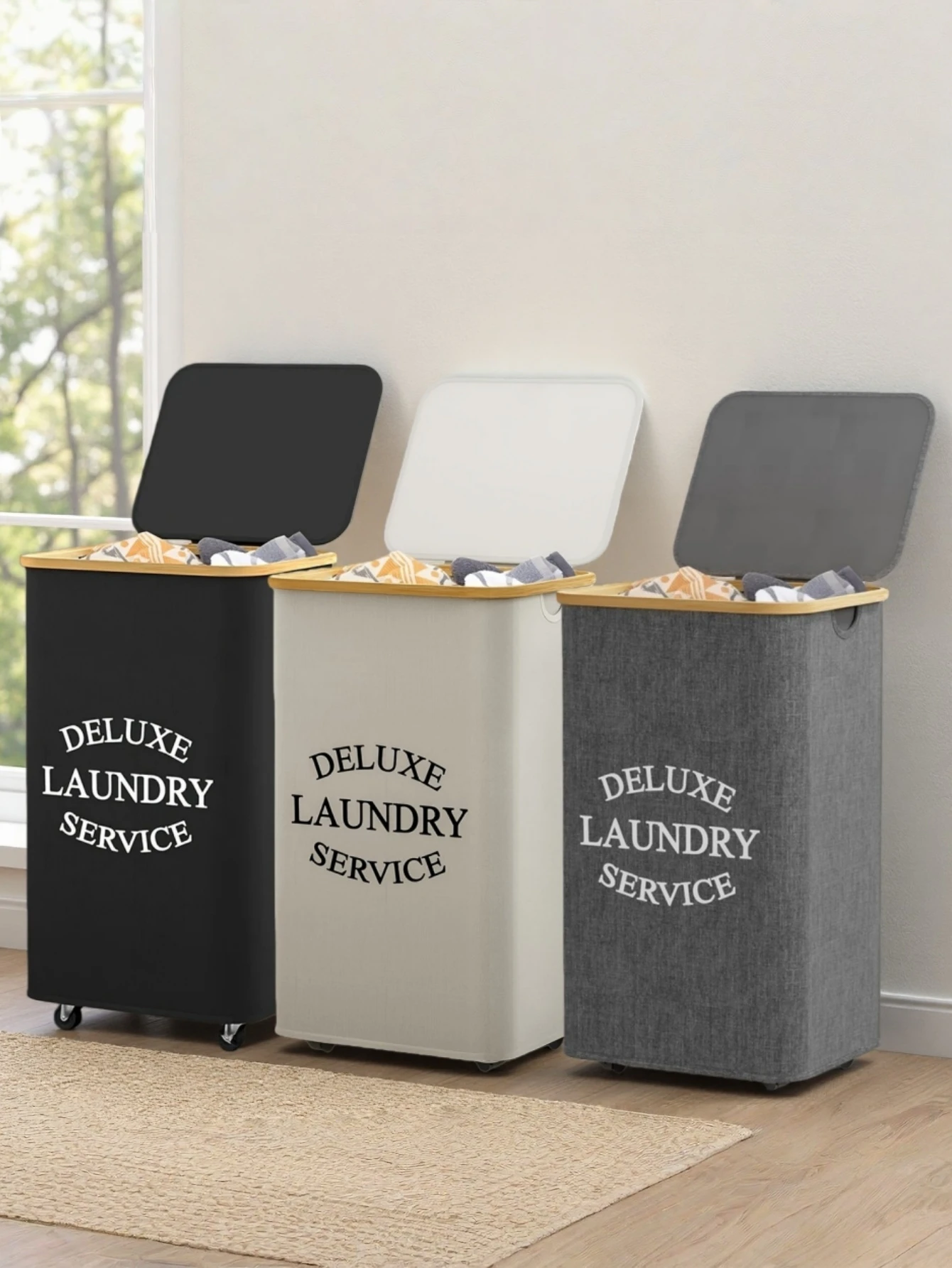 / 110L Foldable Laundry Basket with Wheels Ultra-Large Capacity Includes Inner Mesh Bag Handles And Lid for Clothes Storage