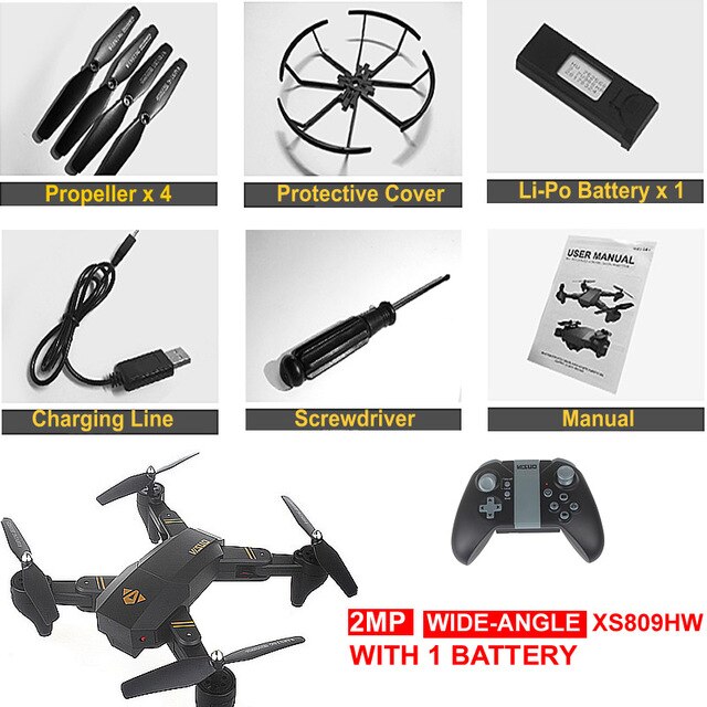 Мини складной дрон XS809W XS809HW с Wi-Fi FPV HD камерой, широкоугольным удержанием высоты, радиоуправляемым квадрокоптером FSWB