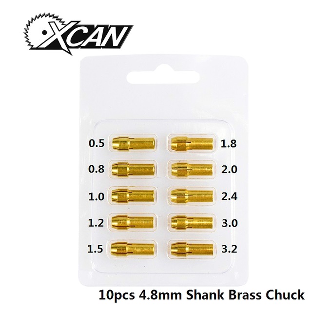 xcan 10pcs brass Chucks Bits Brass Collet Mini Drill Chuck for Dremel Rotary Tool 4.8mm Dia 0.5mm-3.2mm Power Tool Accessory